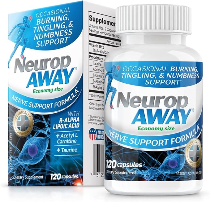 NeuropAWAY Nerve Support Supplement, R-Alpha Lipoic Acid to Help Provide Nerve Relief and Health in as Little as 5 Days, Acetyl-L-Carnitine, Taruine, Vitamin B12, L-Citrulline 120 Capsules