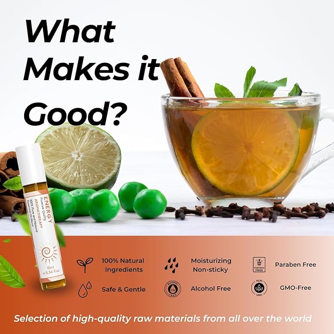 Benatu Energy Essential Oil Roll On Blend (with Clove, Lemon, Grapefruit Oil)- Travel Size Relaxing Roller for Body Topical Massage, Natural Scent Aromatherapy Gift for Women & Men 10ml