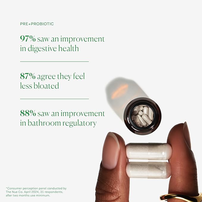 The Nue Co. PREBIOTIC + PROBIOTIC Supplement, Supports Gut Health, Synbiotic and Spore Based, IBS Relief, Immunity, and Skin, Vegan, Gluten Free, 60 Capsules