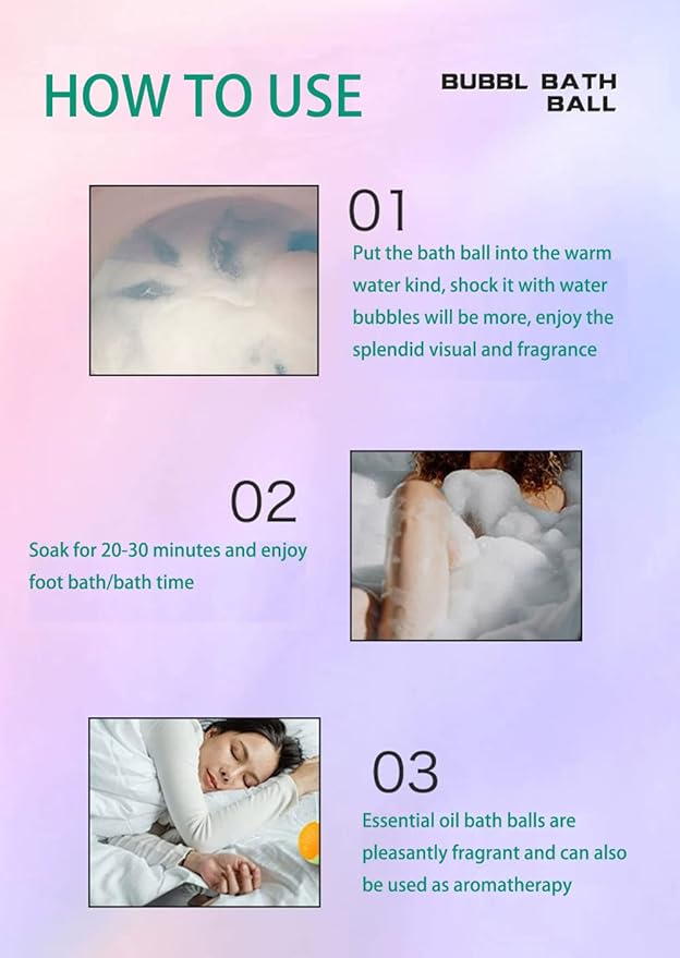 - [RICH FOAM] - Put the Bath Bombs ball into the bathtub and then use the water impact to get rich foam, so you can have a better bathing experience, and the more the water impact, the richer the foam