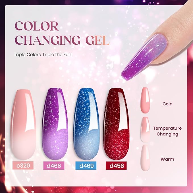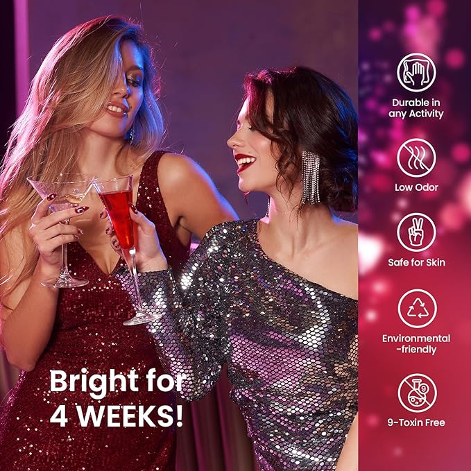 - 【Soak-off Gel Nail Polish】: 36 colors of gel nail polish, including green, blush-pink, brown, purple, and glitter gel polish, need to be cured under a nail lamp. Base and topcoat are required. The average time for LED curing is 60-120 secs. With proper application, this low-odor flash diamond gel polish can last for more than 4 weeks.
