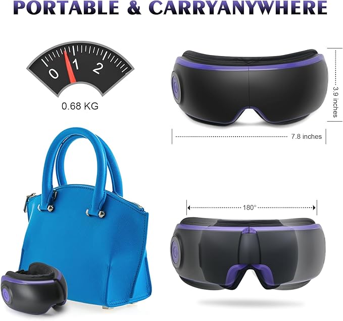 - 180° Adjustable&Portable Design : Our electric eye massager folds into a smaller one so you can take it to the office, to the plane, to travel. Use the heat function for 3-5 minutes for quick stress relief. It's easy to use at home or in the office.So it is a ideal gift to give family,friends.