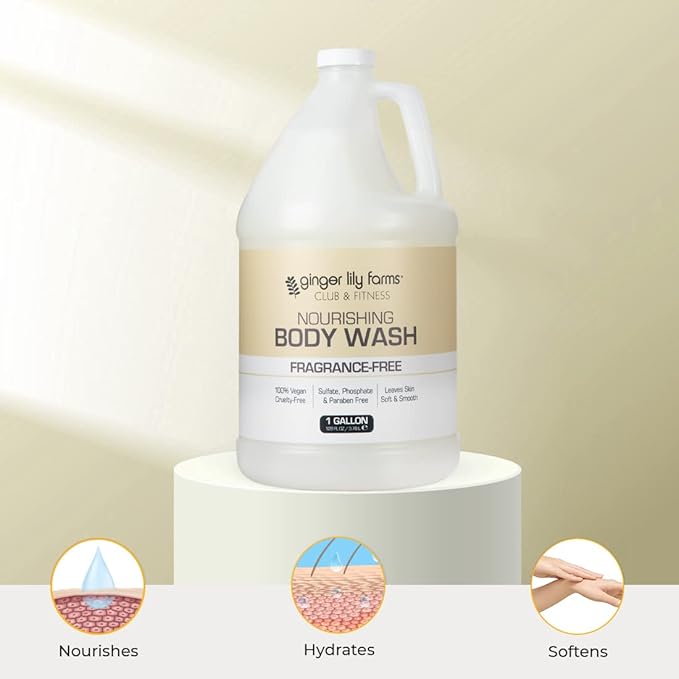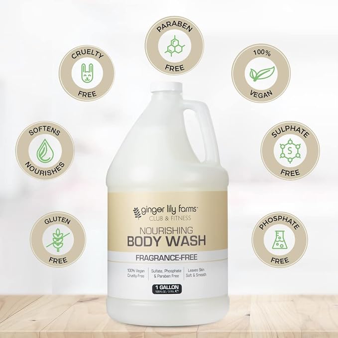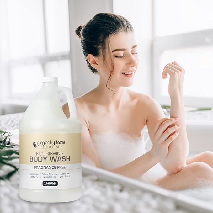 Ginger Lily Farms Club & Fitness Nourishing Body Wash, 100% Vegan & Cruelty-Free, Bath & Shower Gel for Men and Women, Fragrance Free, 1 Gallon (128 fl. oz.) Refill