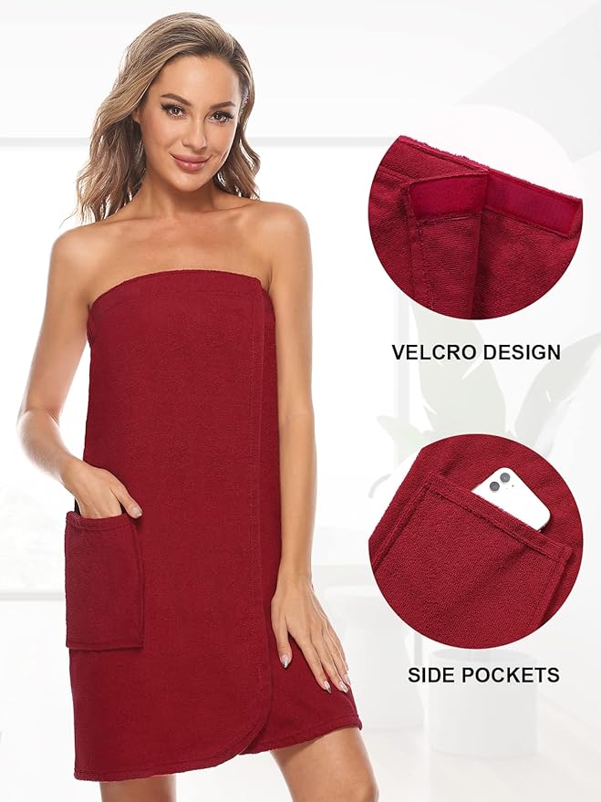• Thoughtful Design: Women's bath wrap with velcro closure design,adjustable shower wrap can be well wrapped around the body to show your body curves,Bath wrap with pockets can place cell phones and other belongings,convenient and safe.