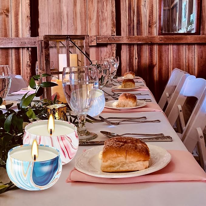 - ๐ใCandle Long LastingใSoy wax content 2.5 oz per each, 15 to 20 hours long lasting time. A total combustion of 240 to 320 hours.Providing scented, creating mood enhancing atmospheres.
