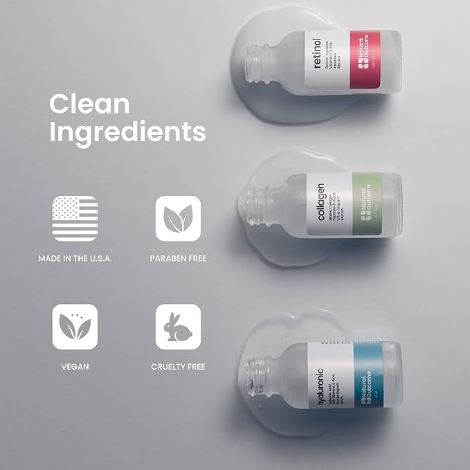 - GENTLE AND EFFECTIVE: Our serum kit are is gentle yet effective and suitable for all skin types, including sensitive skin. They are also free from harsh chemicals, parabens, and artificial fragrances. All Natural Outcome products are proudly made in the USA in our private manufacturing facility ensuring the highest quality and safety standards.
