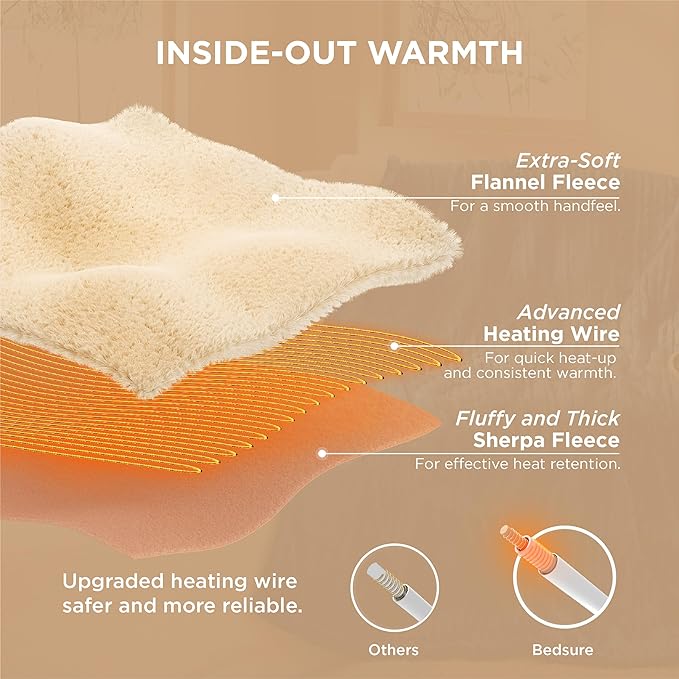 - Safer & More Reliable: Conducted in Bedsure Intertek-Recognized Satellite Lab, 74 safety tests with standards surpassing UL ensure safer performance. This twin electric blanket is ETL and FCC certified, and its default 8-hour auto shut-off prevents it from overheating so that you can enjoy warmth with complete peace of mind