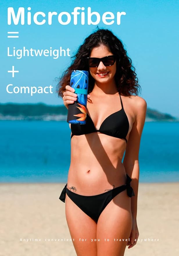 - LIGHTWEIGHT AND PORTABLE: The microfiber beach towels are made of ultra fine microfiber material that is incredibly thin and lightweight. They come with a convenient carrying strap that makes it easy to take them with you wherever you go. When folded, they are as small as a mobile phone and can easily fit in your pocket or beach bag