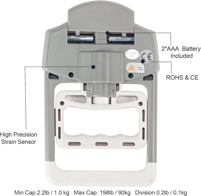 - [Accurate Measurement] - This hand grip strength tester is equipped with a high-precision strain gauge sensor for accurately measuring grip strength up to 198 pounds with the division of 0.2lbs / 0.1kgs. 2* AAA batteries included;