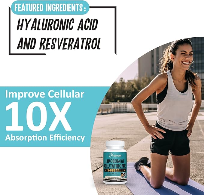 - High Dose, 2400 MG of Liposomal Glutathione Per Serving - Our body's glutathione depletes as we age. Incorporating liposomal glutathione into your dietary supplement helps improve the skin while producing a brighter, more youthful, complexion. Furthermore, glutathione plays a vital role in keeping our body to stay in great shape.