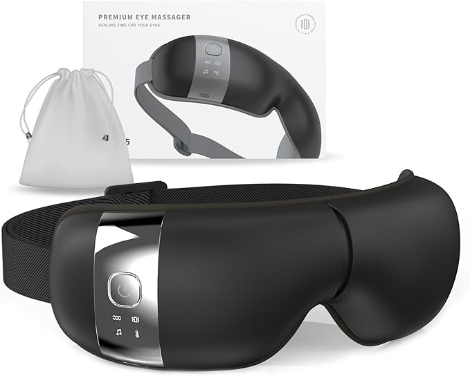 HubiCare Eye Massager with Heat, Vibration, and Music Helps Relieve Strain, Dark Circles, Dryness, and for Migraine Relief Relaxation and Better Sleep Gifts for Women/Men (Black)