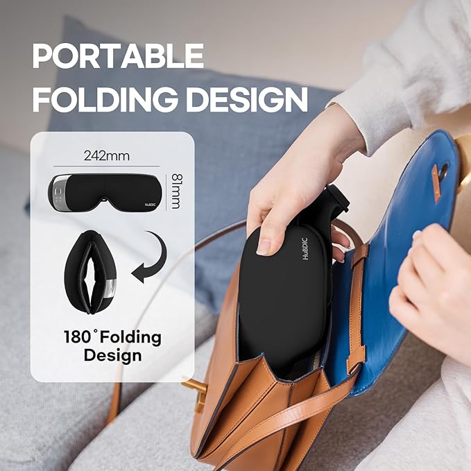 - 【Reduce Eye Strain & Improve Sleeping】HubiCare eye massager adopts oscillating pressure and rhythmic percussion massaging, it can make the skin around the eyes more shiny and elastic. HubiCare heated eye mask with comfortable and stable music can play a good sedative effect. Wear it for 15 minutes before going to bed every night, you will be totally relaxed and enjoy a better sweet dream. Our eye care machine also can effectively help you be refreshed after long-day work or study.