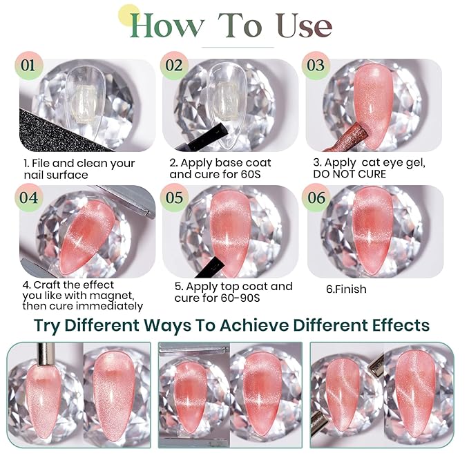 - Amazing and Unique Effect: To get glow in the dark effect, they need to absorb ultraviolet rays from UV/LED lamp or sunshine, then will get luminous effect at night. Featured with cat eye effect which makes your nails vivid and mysterious.