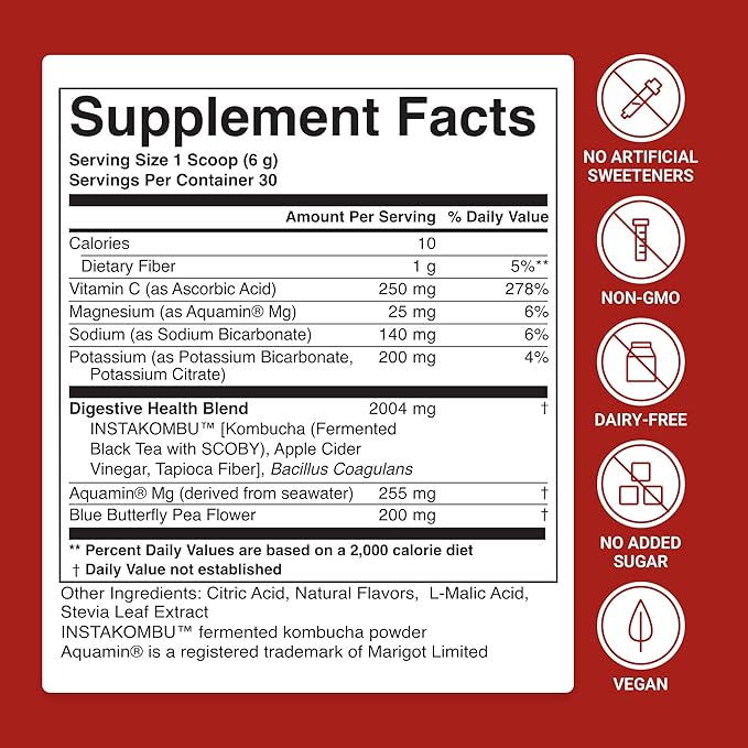 ACTIVATEDYOU Daily Digestive Tonic Kombucha - Support Healthy Digestion & Youthful, Long-Lasting Energy- Prebiotic Fiber, Probiotics, Postbiotics, Vitamin C, Berry Lemonade Flavor (30 Servings)