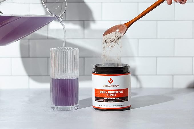 - EASY TO USE - To use Daily Digestive Tonic, simply mix a scoop of our easy-dissolve powder with 8oz water or your liquid of choice. Its refreshing raspberry lemonade flavor is the perfect way to start your day!