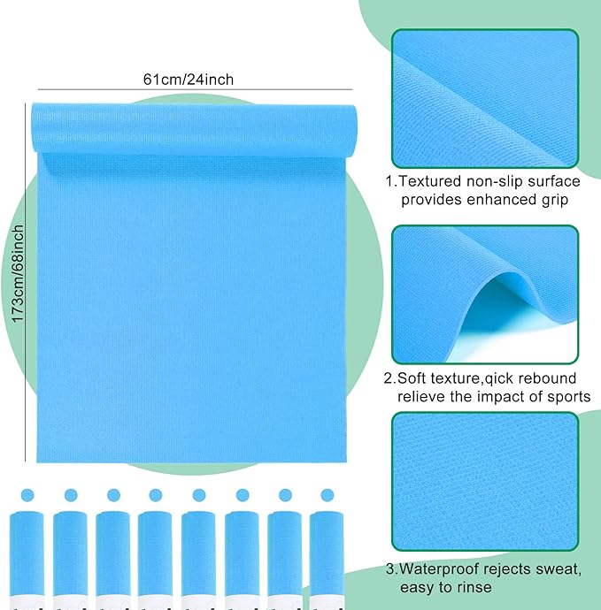 - Package Includes: you will receive 12 pieces of yoga mats in light blue; Enough quantity can meet your daily use, replacing and sharing needs