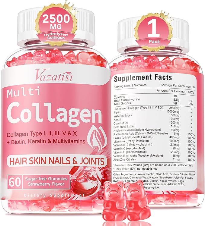 - ๐ 5X Better Absorption Collagen Peptides for Visible Skin & jโกฤซnt Results: Get ready for a transformation! Our sugar-free collagen gummies feature multi-hydrolyzed collagen peptides (Types I, II, III, V, X) with a low molecular weight of under 1500 Da for 5 times better absorption. This advanced collagen complex boosts your skinโs natural collagen production, working to smooth fine lines and wrinkles, strengthen hair & nails, and support jโกฤซnt flexฤซbฤซ-lฤซtyโall in a delicious strawberry gummy you'll love