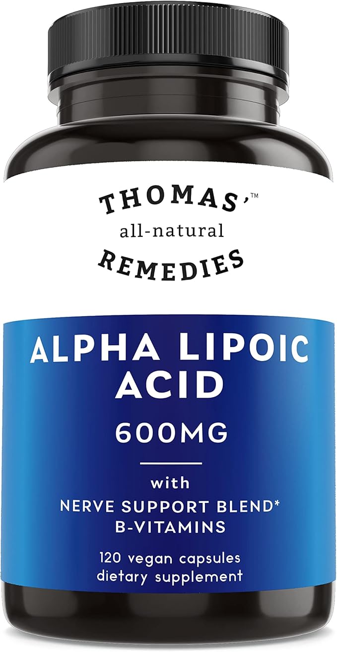 Thomas' all-natural Remedies Alpha Lipoic Acid 600mg, 120 Capsules with B-Vitamins, Vegan, No fillers