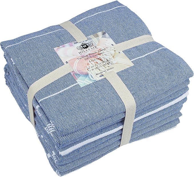 HILLFAIR Cotton Turkish Beach Towels, Quick Dry Lightweight Sand Free Peshtemal Towel for Bath Swim Yoga Spa Travel, Beach Accessories, Oversized Cotton Turkish Towels (39 x 72 inch- 4 Pack Blue)