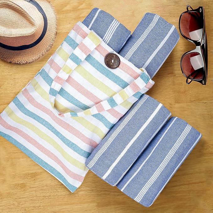 - SUPERIOR QUALITY & EXCEPTIONAL ABOSRBENCY: Our Turkish beach towels, features oversized dimensions that provide ample coverage and a truly luxurious experience. Its extra-large size makes it the perfect companion for sunbathing, picnics, or poolside lounging. You can go ahead and select the color that resonates with you and enjoy the comfort and style that these multipurpose, sand-free striped beach towels have to offer.