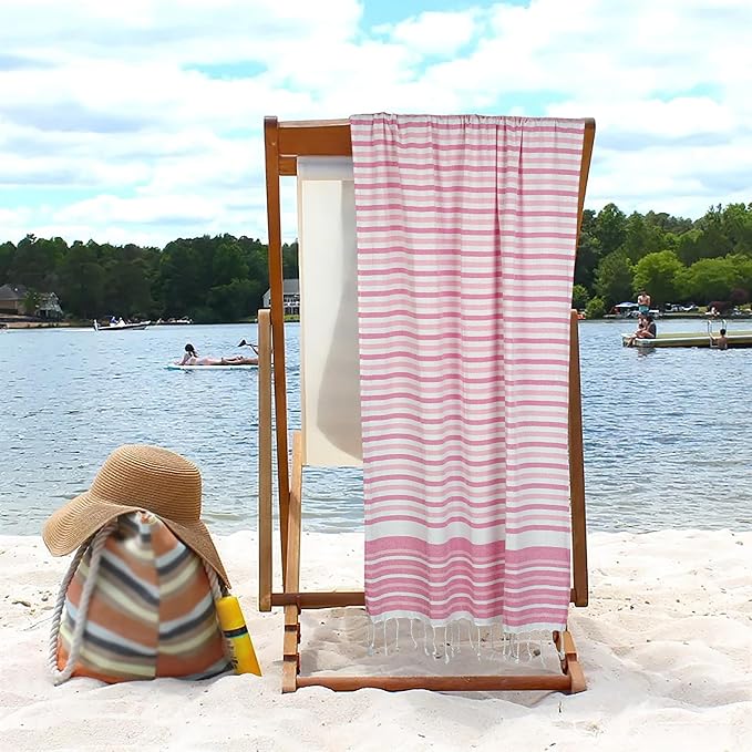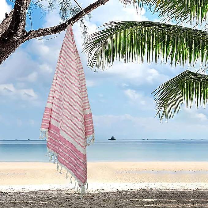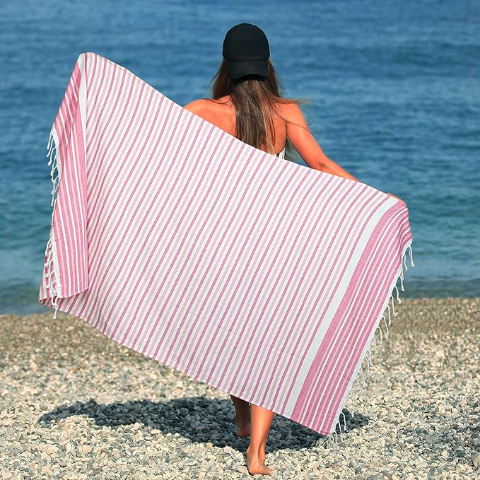 - SUPERIOR QUALITY & EXCEPTIONAL ABOSRBENCY: Our Turkish beach towels, features oversized dimensions that provide ample coverage and a truly luxurious experience. Its extra-large size makes it the perfect companion for sunbathing, picnics, or poolside lounging. You can go ahead and select the color that resonates with you and enjoy the comfort and style that these multipurpose, sand-free striped beach towels have to offer.