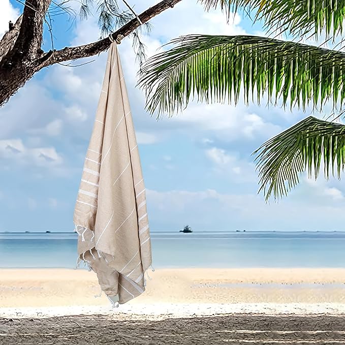 - SUPERIOR QUALITY & EXCEPTIONAL ABOSRBENCY: Our Turkish beach towels, features oversized dimensions that provide ample coverage and a truly luxurious experience. Its extra-large size makes it the perfect companion for sunbathing, picnics, or poolside lounging. You can go ahead and select the color that resonates with you and enjoy the comfort and style that these multipurpose, sand-free striped beach towels have to offer.