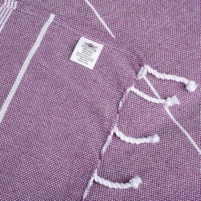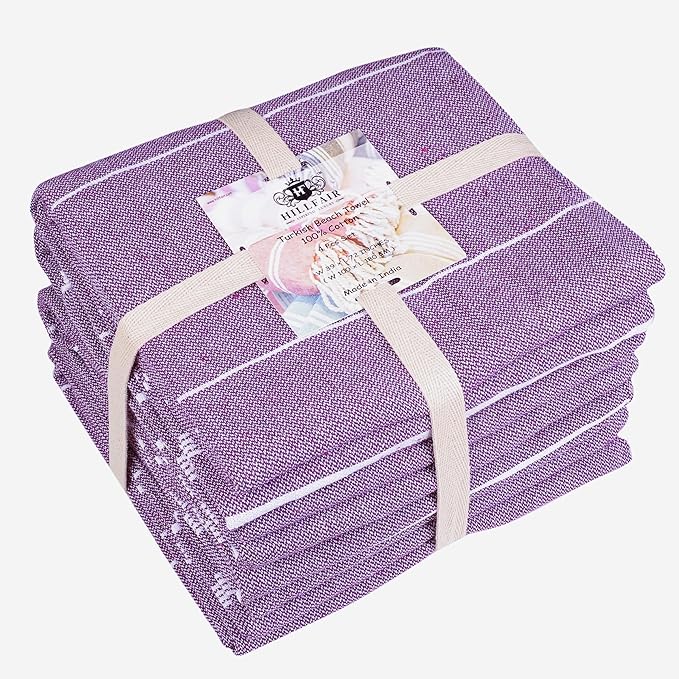 HILLFAIR Cotton Turkish Beach Towels, Quick Dry Lightweight Sand Free Peshtemal Towel for Bath Swim Yoga Spa Travel, Beach Accessories, Oversized Cotton Turkish Towels (39 x 72 inch- 4 Pack Purple)