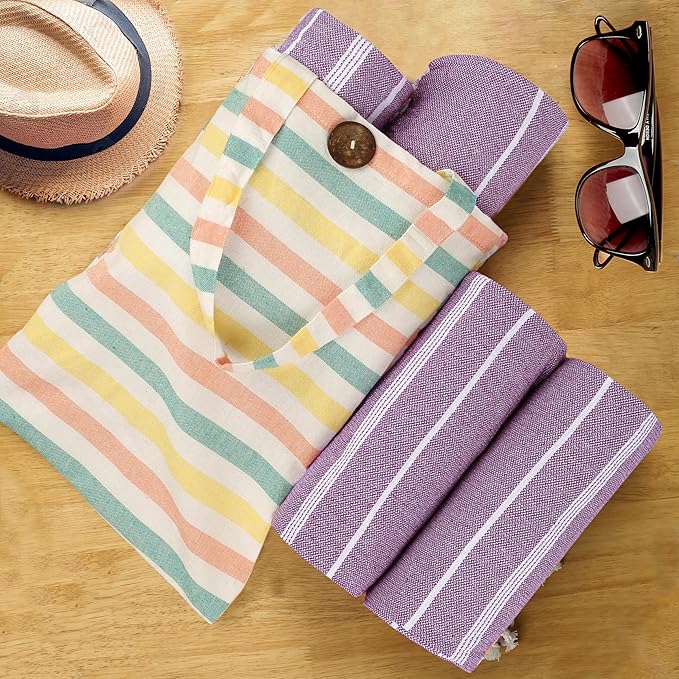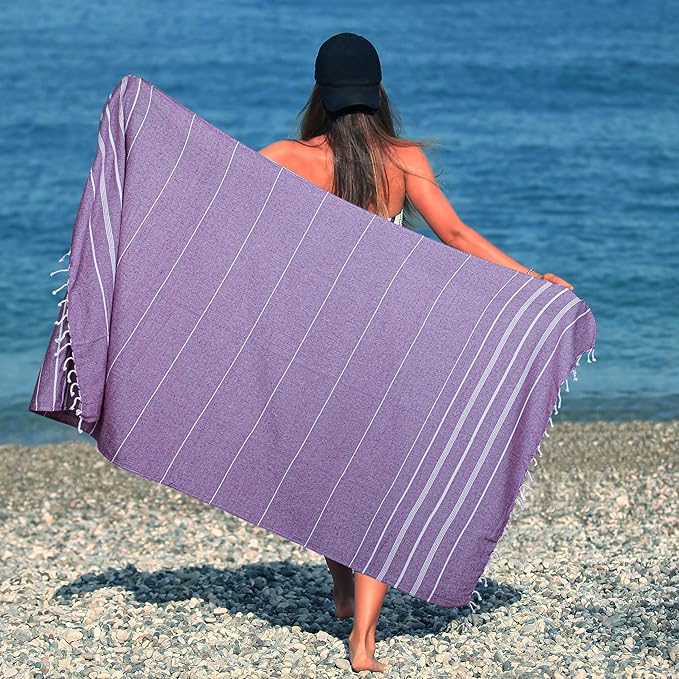 - SUPERIOR QUALITY & EXCEPTIONAL ABOSRBENCY: Our Turkish beach towels, features oversized dimensions that provide ample coverage and a truly luxurious experience. Its extra-large size makes it the perfect companion for sunbathing, picnics, or poolside lounging. You can go ahead and select the color that resonates with you and enjoy the comfort and style that these multipurpose, sand-free striped beach towels have to offer.
