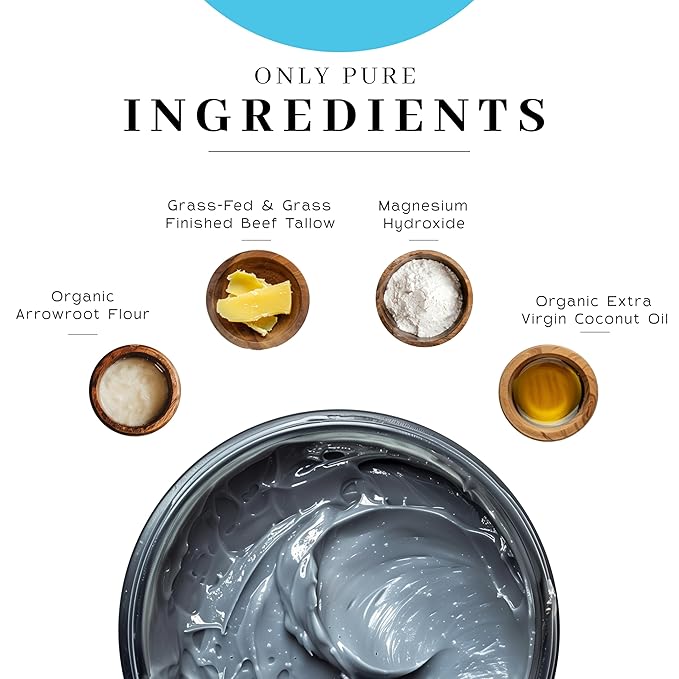 - Only Pure Ingredients: Made with coconut oil, arrowroot oil, magnesium hydroxide, and grass-fed beef tallow, this deodorant is gentle and suitable for delicate skin
