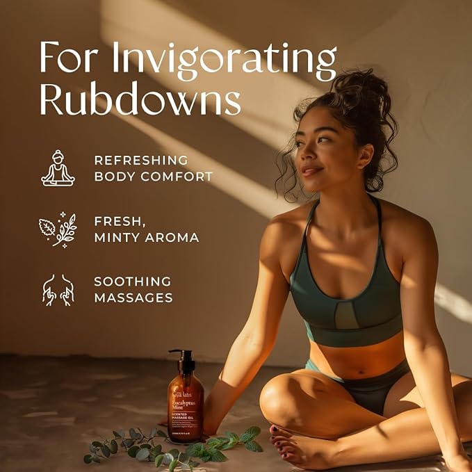 - Moments Of Rejuvenation For Your Muscles. After an intense workout, use eucalyptus mint massage oil for sore muscles. Its natural blend offers comfort, easing tension and improving recovery, turning post-exercise into a soothing experience.