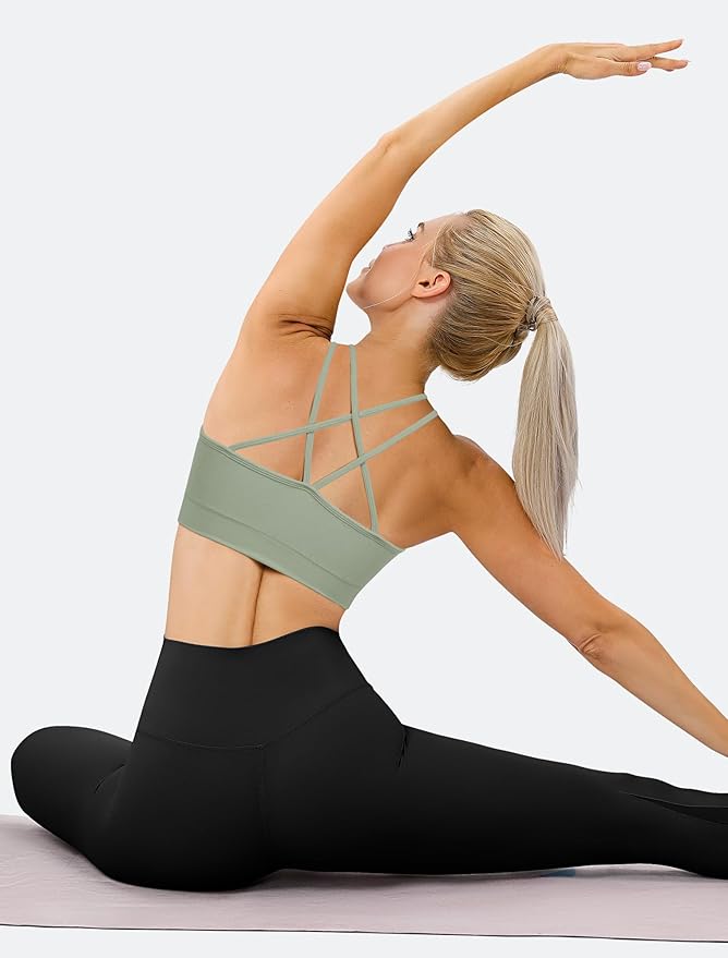 Women's Cross Back Sports Bra Padded Strappy Medium Support Yoga Bra for Workout Fitness 3 Pack