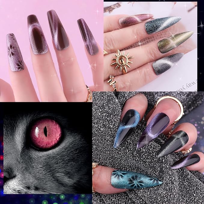 - 【Long-lasting】 Having innovative formula of our cat eye gel nail polish kit, you can wear glossy nails longer (up to 21 days or more). Holographic magnetic cat eye gel polish set is perfect for all daily working or dating, vacations party or ceremony activity.