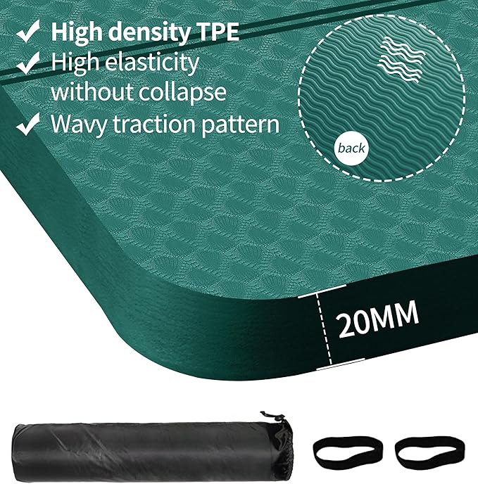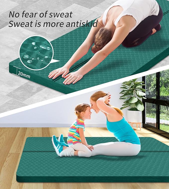 - ๐นNON SLIP SURFACE FOR ADDED STABILITY: The oversized mat has textured surface to enhance traction that you can perform any movement with confidence. Non-slip design aids in balance to hold postures much more longer and protect your joints and knees without compromising support or stability.