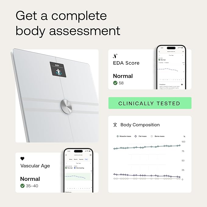 WITHINGS Smart Scales for Body Weight, FSA or HSA Eligible, Body Analysis, Fat Content, Muscle Mass, Bone Density, Visceral Fat, Bathroom Scale, BMI Scales Digital Weight and Body Fat, Bluetooth, WiFi