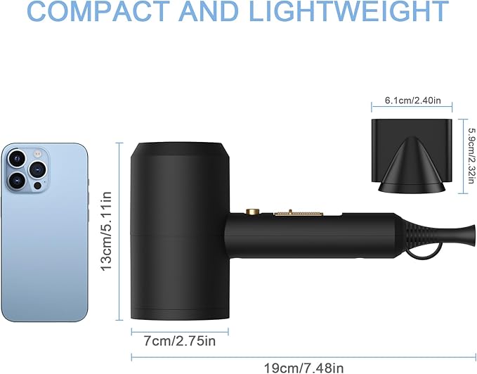 - Powerful Motor for Faster Drying: The professional hair dryer delivers strong wind for fast drying even thick wavy hair in less time, because of the high airflow motor, up to 21,000 rpm. Compact design will be more lightweight & portable.