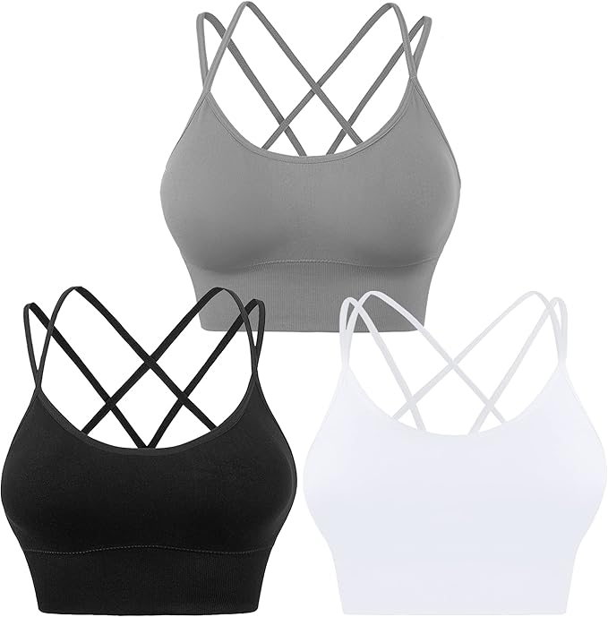 - ☀Cute Crisscross Design: These crisscross althletic bras with strappy back style always keeping your perfect shape. Strappy bralettes look very beautiful with high waist leggings, workout pants or the top with high waisted jeans and accessories as well!