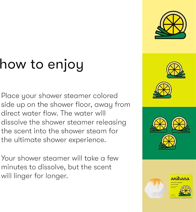 ANIHANA Shower Steamers 4 Pack with Lemongrass Essential Oils, Paraben Free, Cruelty Free, Refreshing Lemonade Scent, 1.76 oz Each