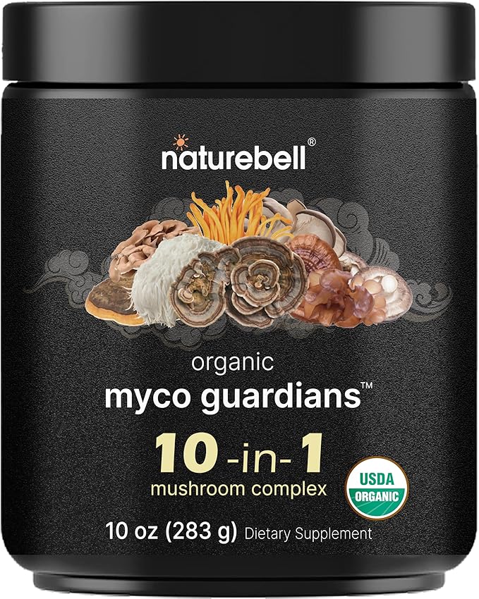 NatureBell Organic Mushroom Powder, 10oz | 10-in-1 Adaptogenic Blend with Lion’s Mane, Reishi, Shiitake, Chaga & More | Supports Energy, Focus & Immune Health | Great for Coffee, Smoothies & Recipes