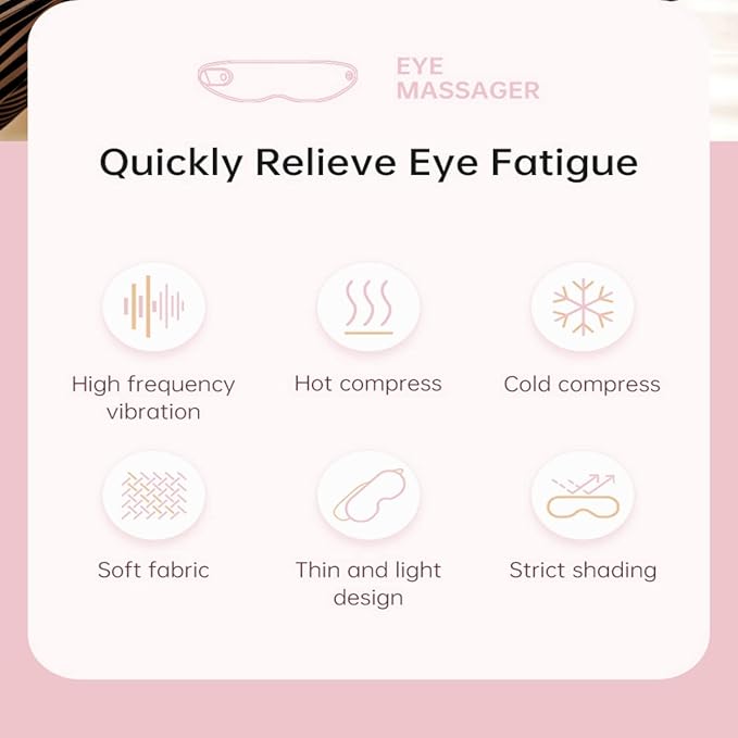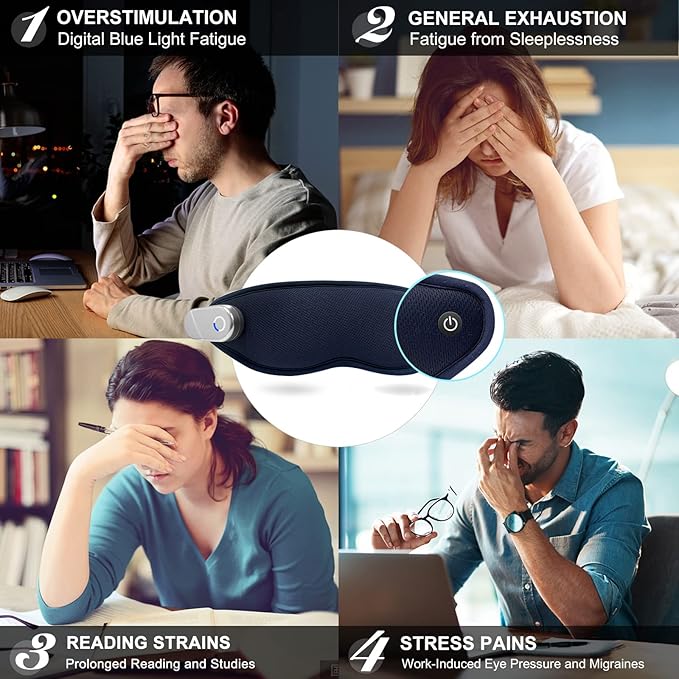 - ❤️Multi-Function Heating Massage Eye Mask: This cordless heated eye mask has 3 functional modes: massage, heating, cold compress mode, Choosing heating and massage combination mode, to relieve the eye fatigue, dry eye, dark circles and tension. Enjoy greater peace of mind with a built-in timer that auto shuts off the massager after 15 minutes of continuous use.