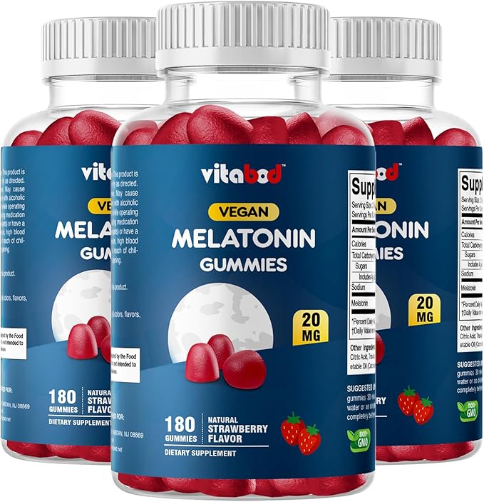 Melatonin 20mg Gummies - 180 Count - Drug Free - Natural Strawberry Flavor - Vegetarian, Non-GMO, Gluten Free (3 Bottles)