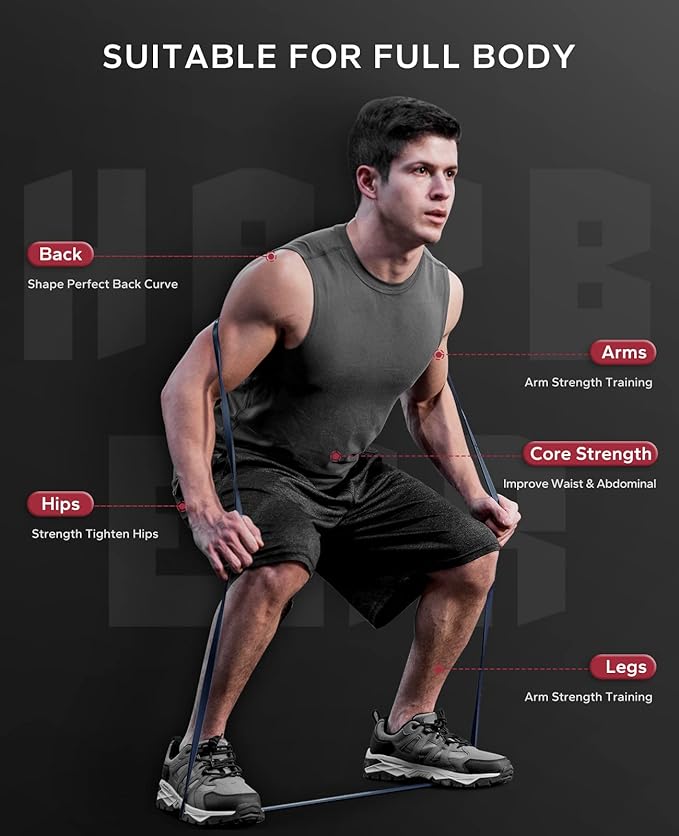 - [ Upgraded Whole Body Workout ] We offer you a large-size Door Anchor to create the atmosphere of a home gym. Combined with it, you can add training moves to arms, back, legs, and butt. We tailor the most suitable pull up band for juniors and seniors. Multiple resistance bands are used together in learning pull ups, Pilates, Mobility, Powerlifting, Chin ups, Yoga, Stretching, Gymnastics, physical therapy, push-ups, barbell and dumbbell assist etc.
