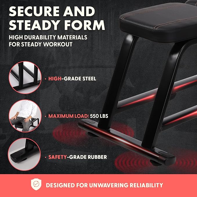 - MULTIPURPOSE WORKOUT BENCH: With this home gym equipment workout bench, you can work out your back, biceps, torso, and entire body. This home workout equipment is also great for a full-body workout like bench presses, dumbbell exercises, etc