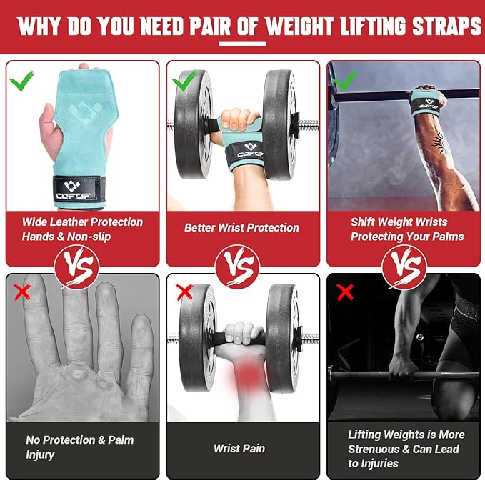 - Enhanced Grip: Professional leather deadlift straps can protect your hands from not only preventing calluses, but also peeling off existing calluses on your hands. Lifting straps take the pressure off your wrists and hands and help you lift heavier weights. More importantly, it improves your ability to exercise larger muscle groups.