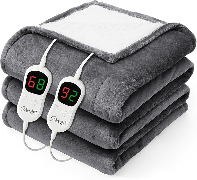 Homemate Heated Electric Blanket Queen Size - 84"x90" Heating Bed Blanket Throw with 10 Heating Levels 8 Hours Auto Off Fast Heating Over-Heat Protection Ultra Soft Flannel ETL Certified, Grey