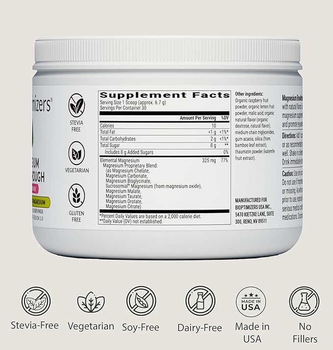 - Optimized for Bioavailability: With bioavailable forms, such as Magnesium Citrate, Glycinate, and Malate, the BIOptimizers Magnesium Breakthrough Drink is formulated for effective absorption and whole-body magnesium support