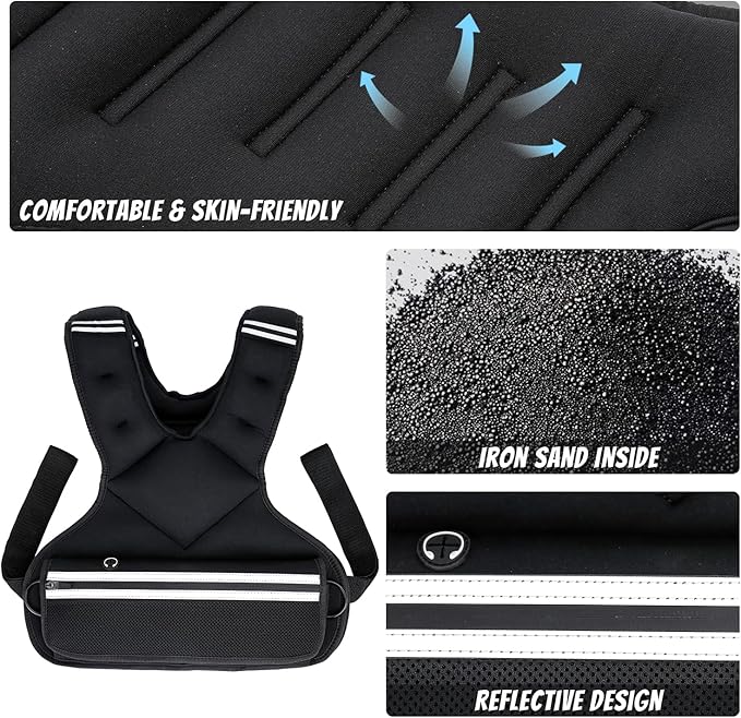 - Humanized Design: The weight of the exercise equipment is evenly distributed on the vest, so you can enjoy the maximum comfort in all types of exercise without affecting your back or shoulders, so that you can train better
