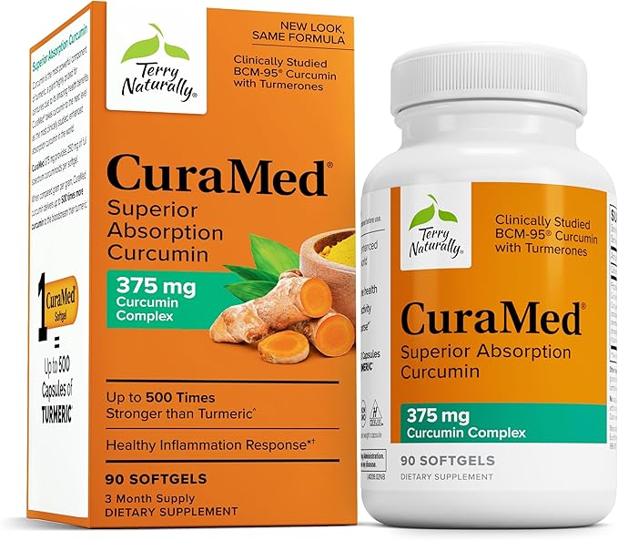 - High-Potency CuraMed Supplement: This supplement features enhanced absorption curcumin blended with turmeric essential oil to support your body's processes
