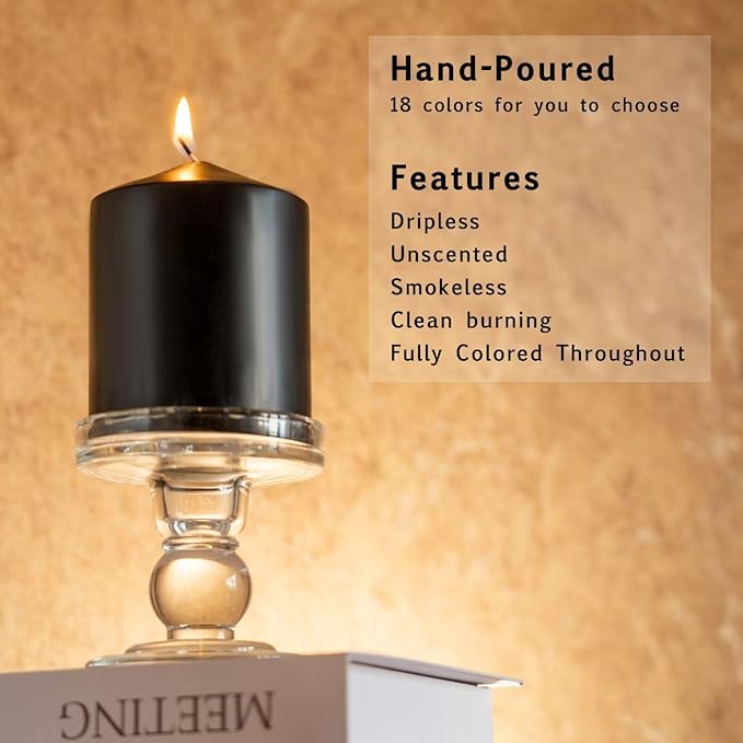 MOZEAL 3" x 8" Hand-Poured Unscented Candles,Large Black Pillar Candles Set of 2,No Drip,Approx 120 Hours Long Burning,Wedding,Dinner,Halloween and Home Decor(3 Inch Diameter 8 Inch Height)