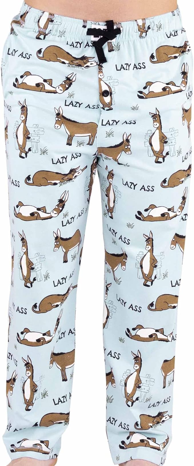 - FUNNY DESIGNS: This pair of pajama pants features a humorous design of a donkey. These novelty pants are sure to make you laugh with their clever jokes.