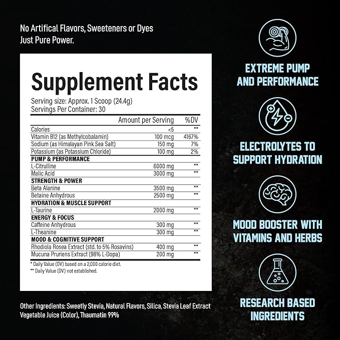 - Product Benefits : Energy, Pumps, Strength, Focus